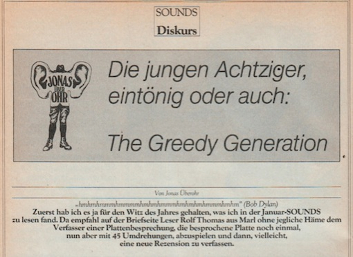 SOUNDS Diskurs - Die jungen Achtziger, eintönig oder auch: The Greedy Generation, Jonas Überohr